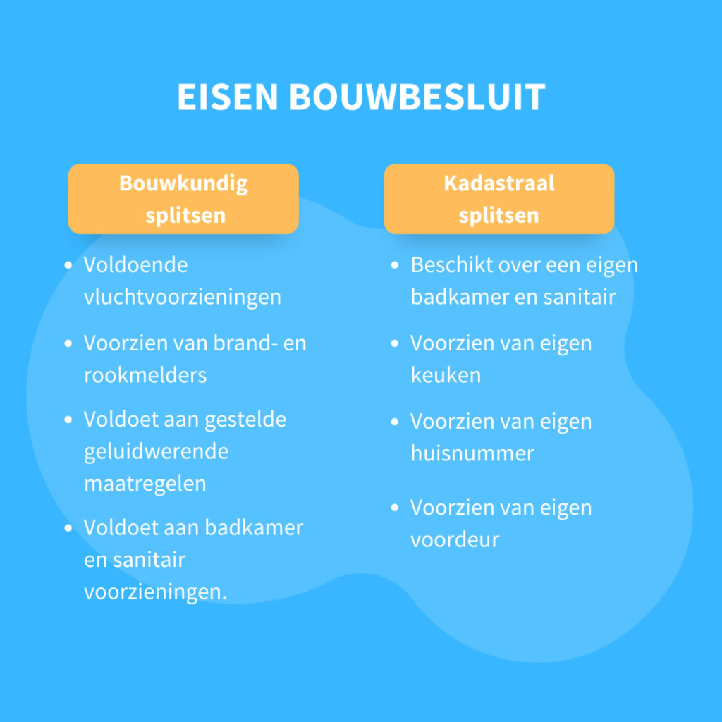 - Uitleg van BouwBesluitOnline over brandcompartimentering en geluidseisen bij woningsplitsing.